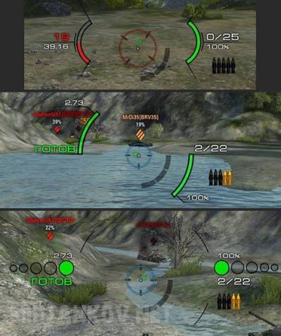 - для визуального восприятия добавлена так же полоса времени перезарядки (слева рядом с перезарядкой);